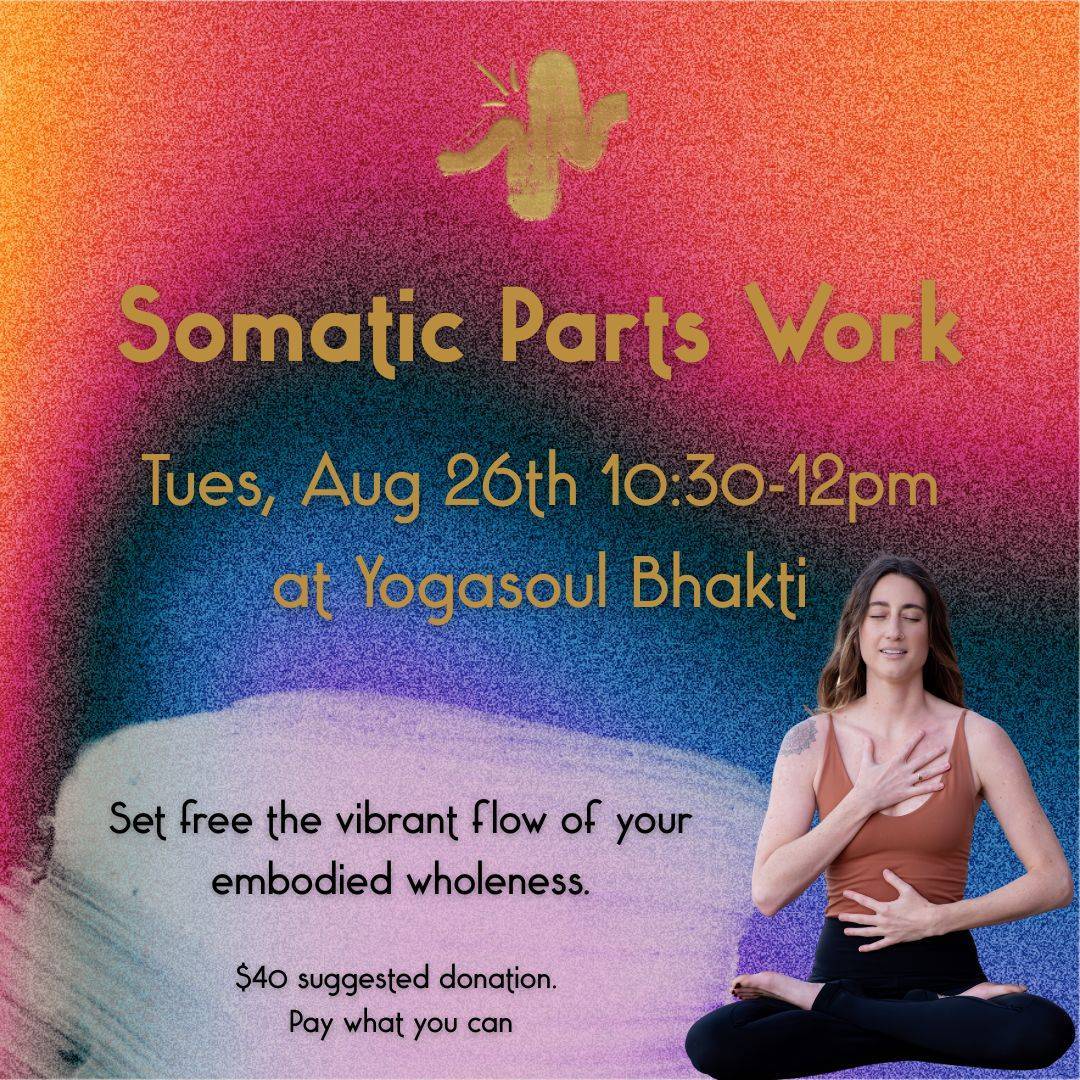 SOMATIC PARTS WORK TUES, AUG 26TH IN PERSON & ONLINE: Somatic Parts Work is a healing practice blending IFS, mindfulness, body awareness, and dialogue to unburden fragmented parts and restore embodied wholeness. This session deepens mind-body connection, focuses on felt sense and reveals powerful insights by guiding you back to the natural wisdom of the body. Session will happen at 10:30am-12pm Central Time in Nashville, TN. There is also an option to join online. Reserve your spot herehttps://hartflows.thrivecart.com/somatic-parts-work/ with Dre